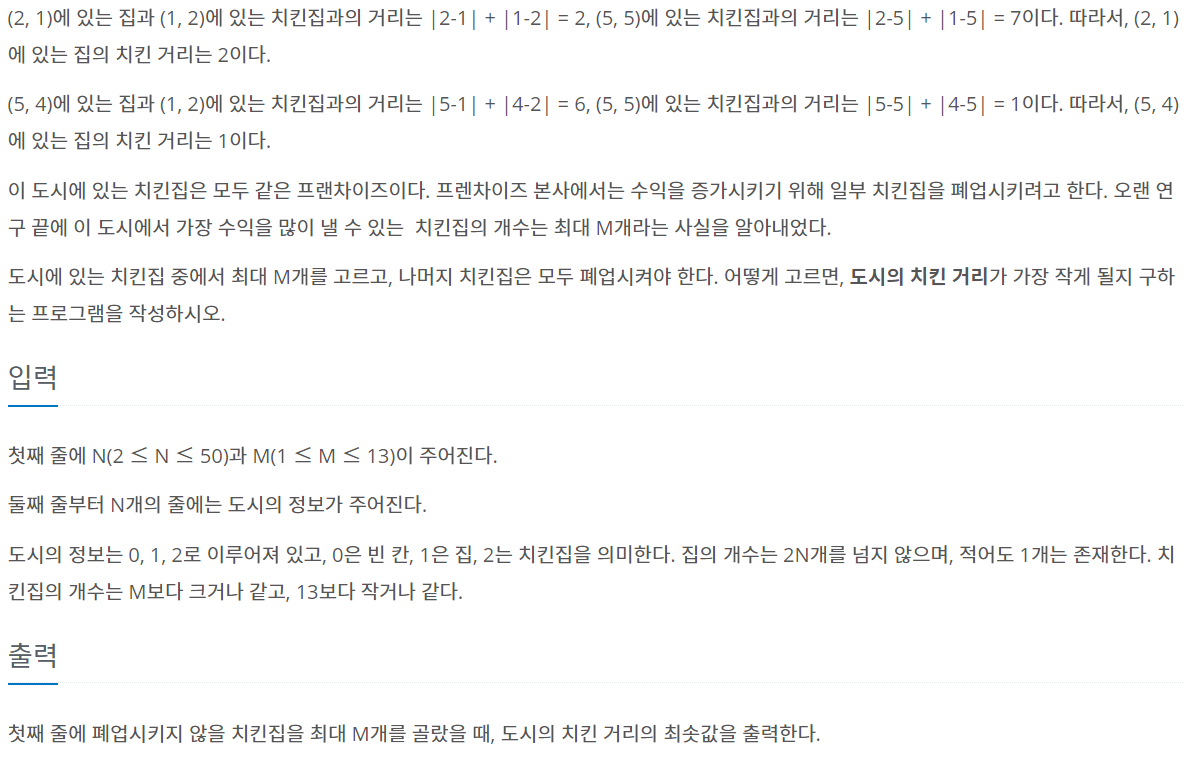 문제 링크 : https://www.acmicpc.net/problem/15686