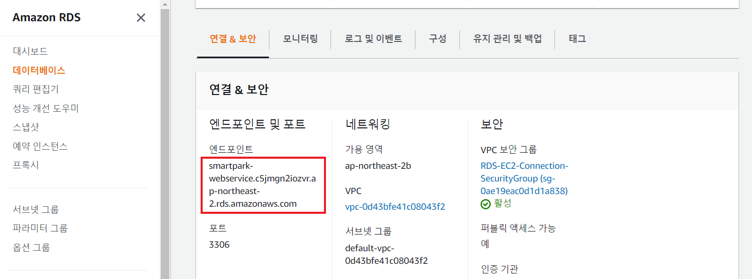 2. 데이터베이스의 엔드포인트 기억하기