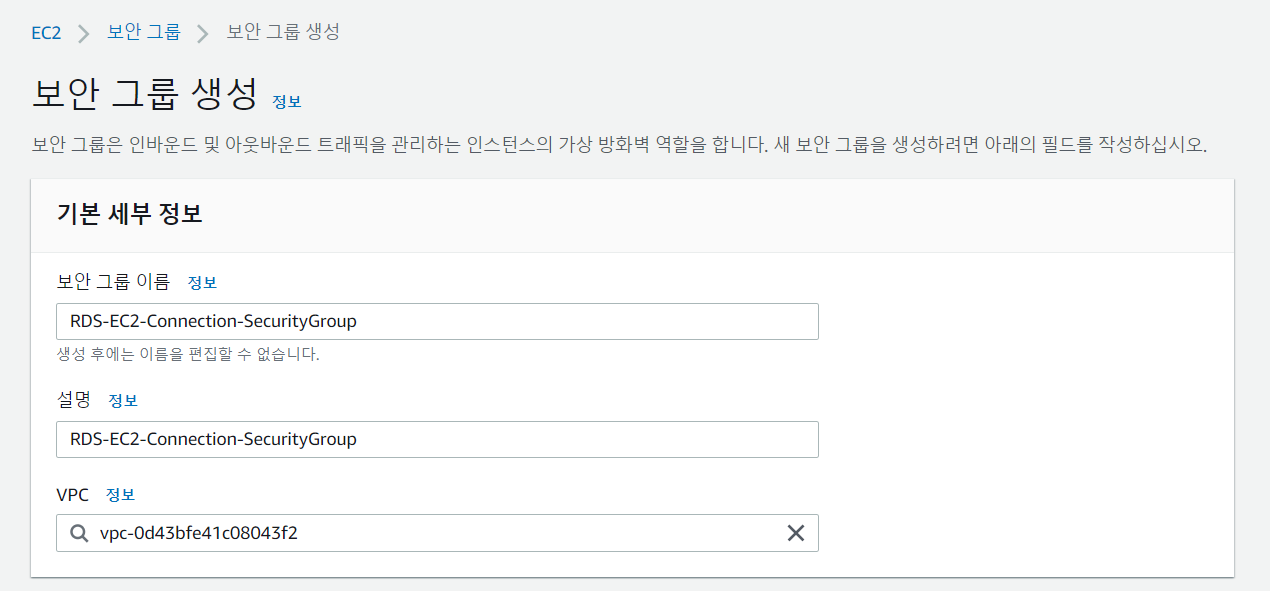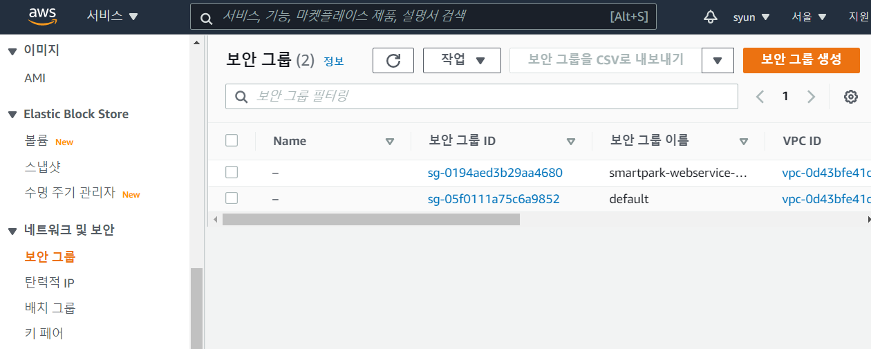 2-1. EC2 > 보안 그룹 > [보안 그룹 생성]