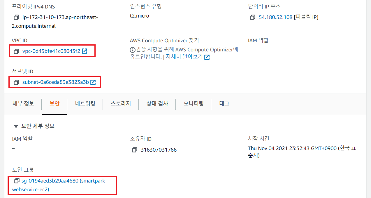 VPC ID, 서브넷 ID, 보안 그룹 기억하기