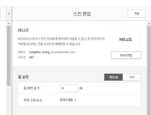 2.1 티스토리 블로그관리 > 스킨편집 > html 편집