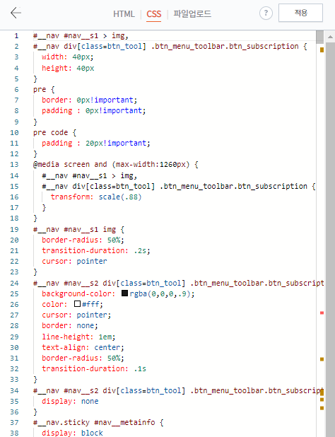 CSS 탭으로 들어가 아무 곳에나 다음 코드를 추가합니다