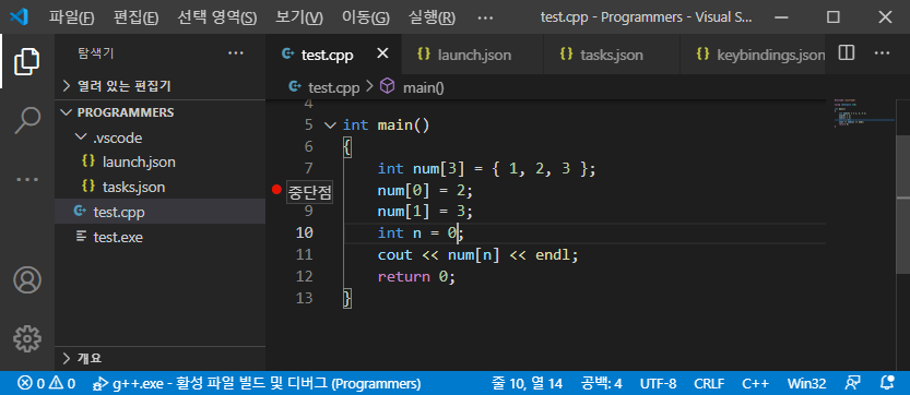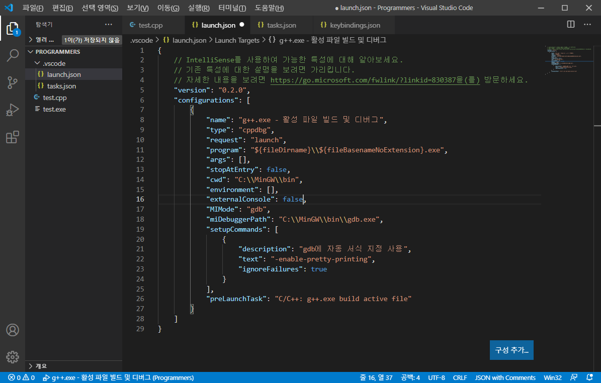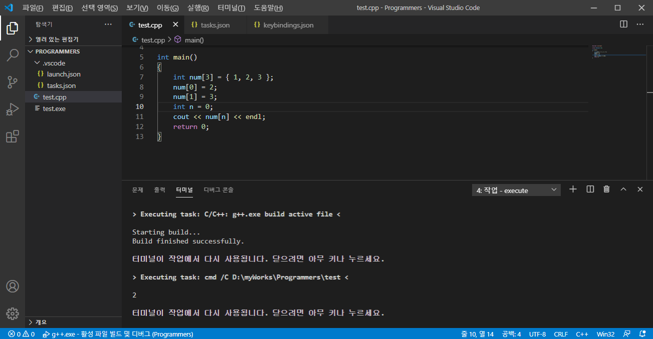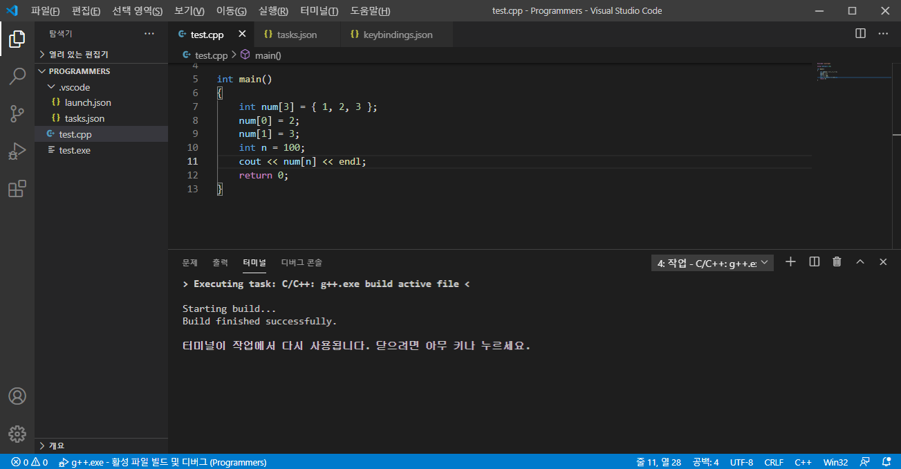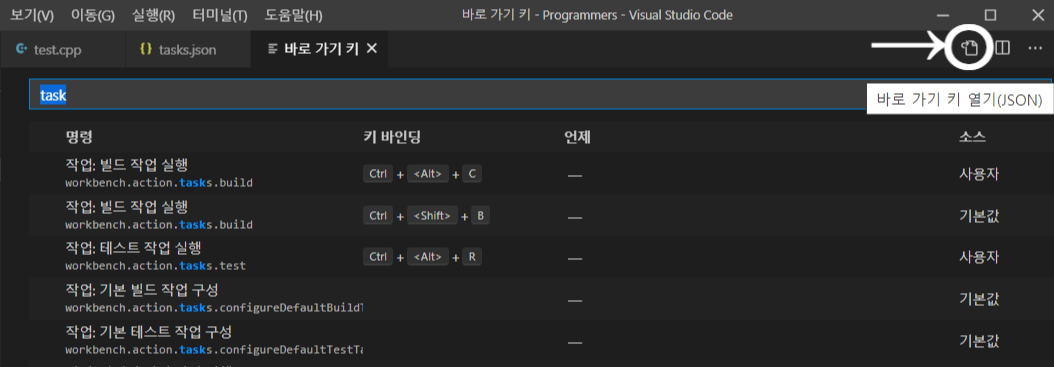 이제 단축키를 설정하여 C / C++ 컴파일을 간편하게 실행할 수 있도록 하겠습니다.