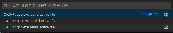 선택화면에서 'C++ (GDB/LLDB)'를 선택하고 'g++.exe build and debug active file'을 선택한다.