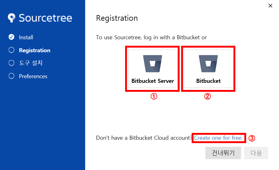 ③ Create one for free : Bitbucket에 회원가입