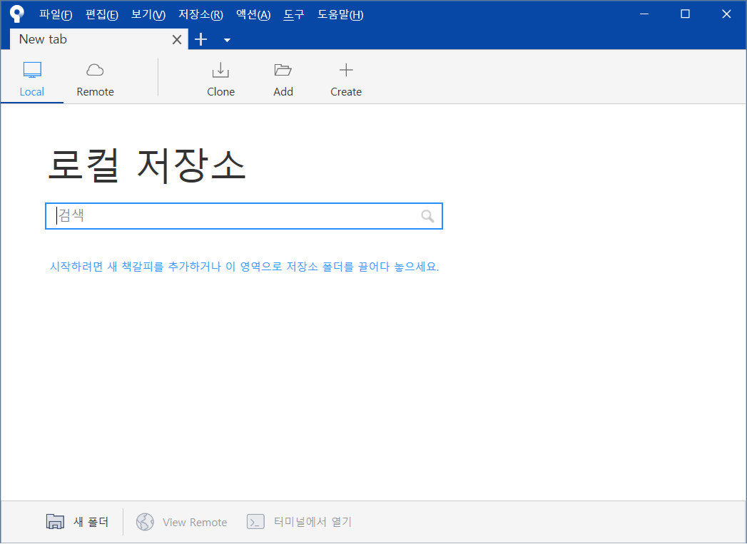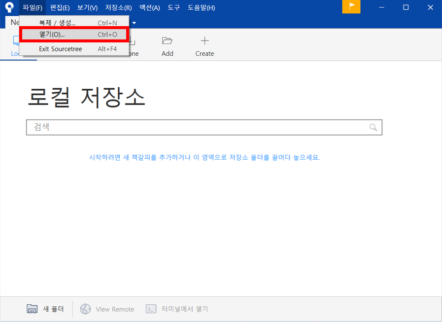 - 원격 : 원격저장소(Remote Repository)를 연다.