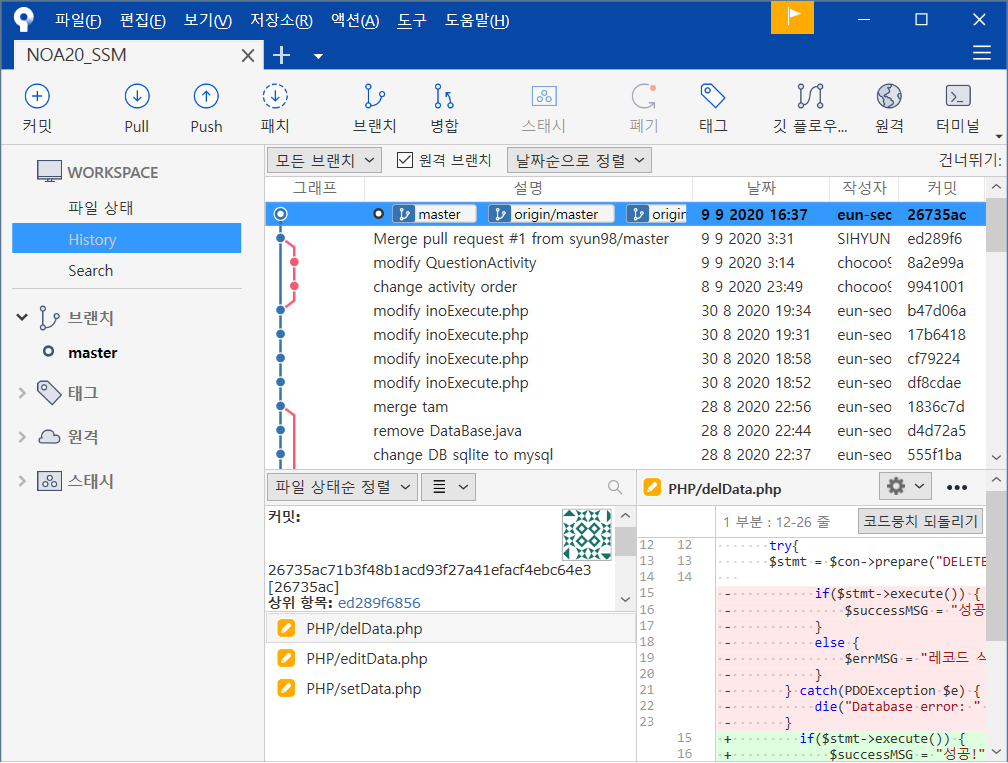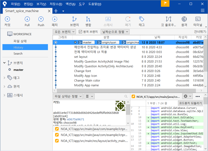 - 히스토리(history) : 해당 프로젝트의 히스토리창 호출