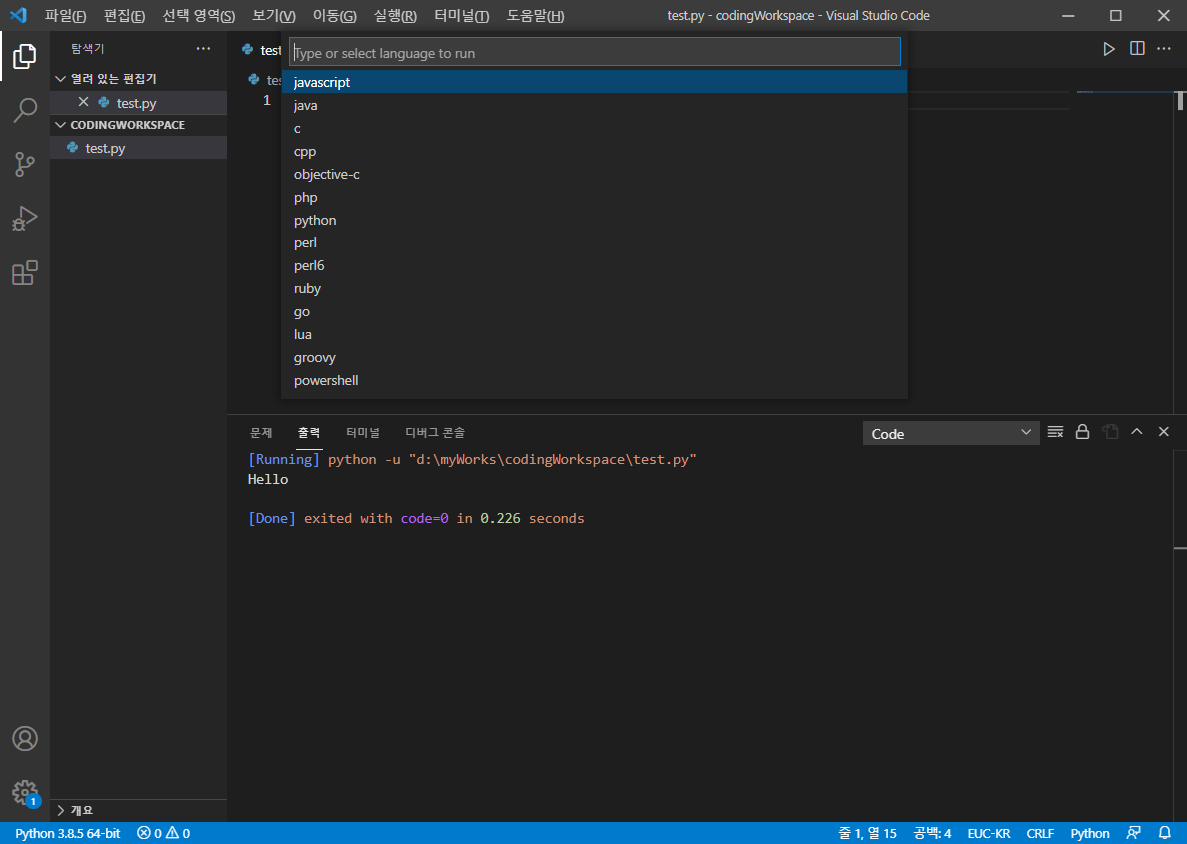 Code Runner가 지원하는 언어는 다음과 같습니다