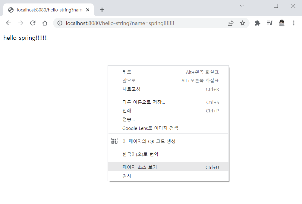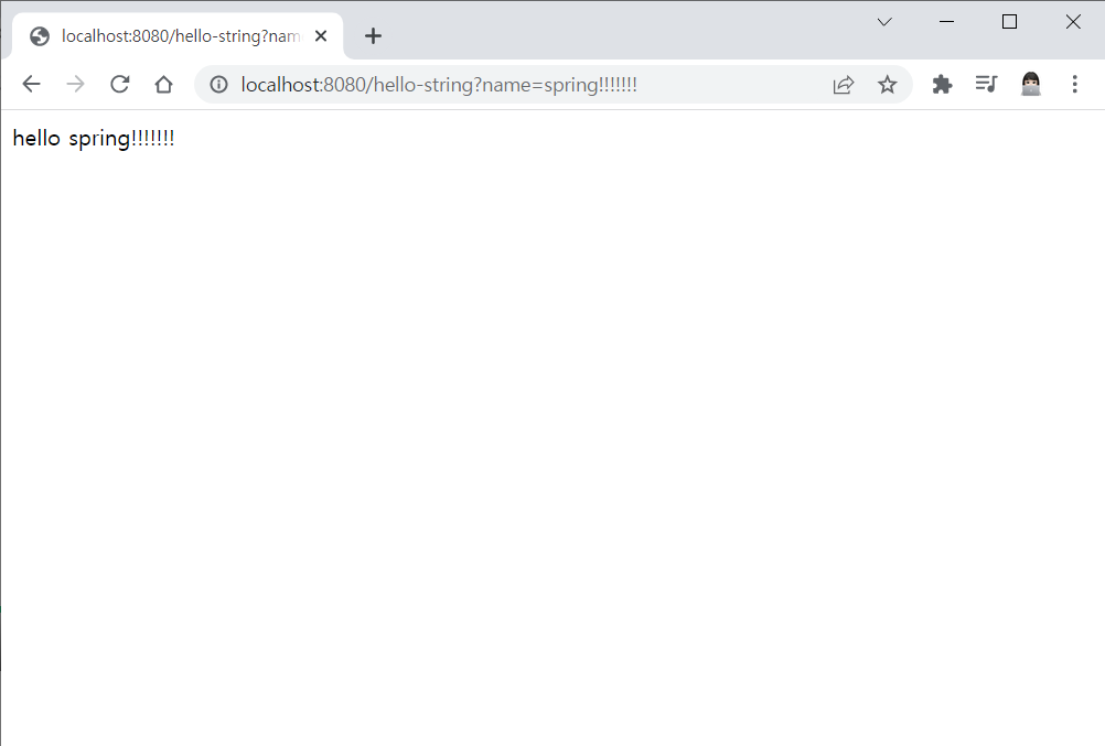 localhost:8080/hello-string?name=spring!!!!!!! 으로 접속
