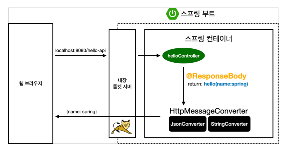 - 'viewResolver' 대신에 'HttpMessageConverter'가 동작
